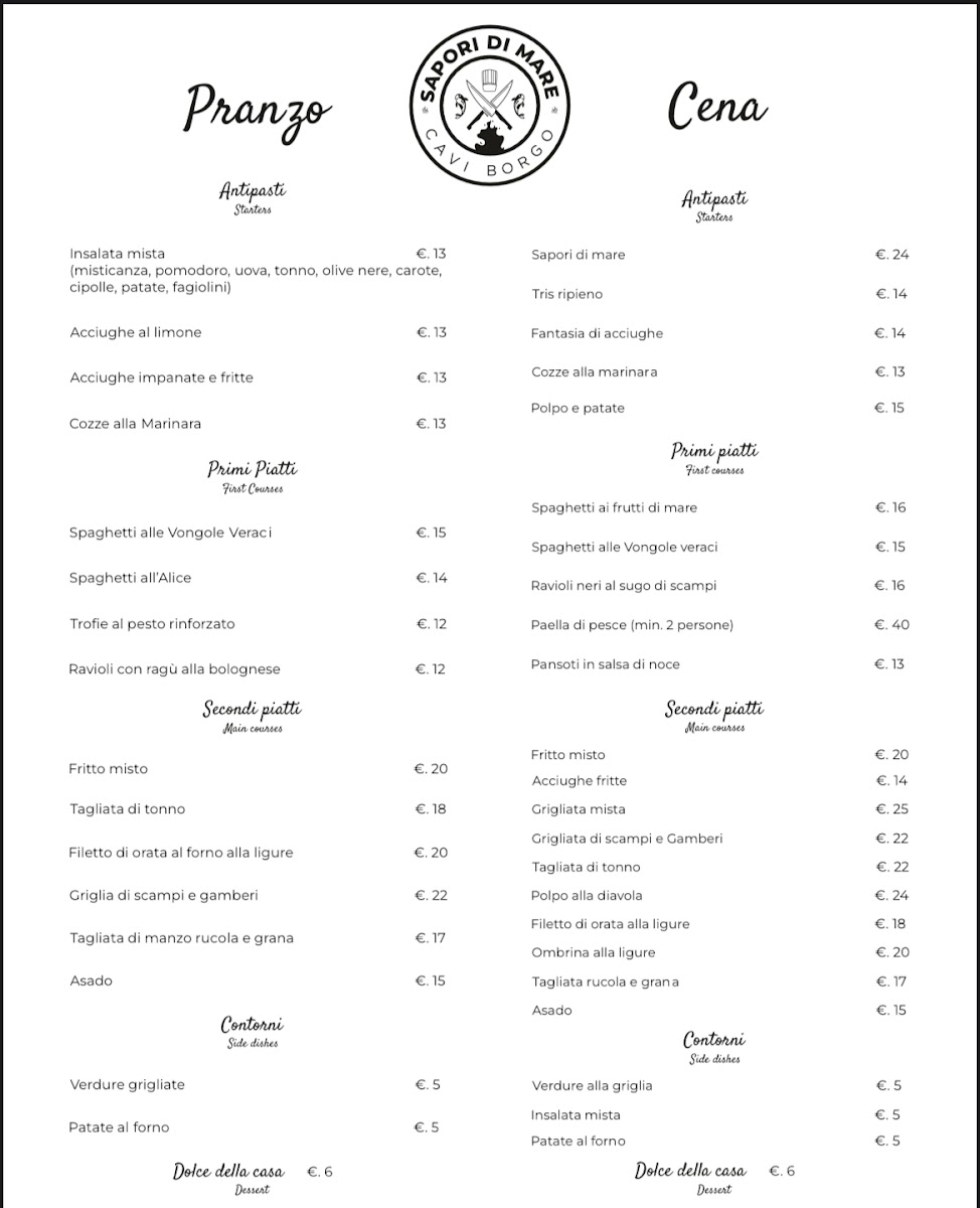 Welcome to Sapori di mare, a culinary gem nestled in the heart of Lavagna, Italy. This charming restaurant offers a delightful escape for seafood lovers, captivating diners with a menu inspired by the rich flavors of the Mediterranean. Located at Piazza Nazario Sauro, 2/3/4, Sapori di mare is celebrated for its warm hospitality and exceptional cuisine. Guests rave about the impeccable Spaghetti alle Vongole Veraci and the fresh, flavorful fritto misto, highlighting the restaurant's commitment to quality ingredients.